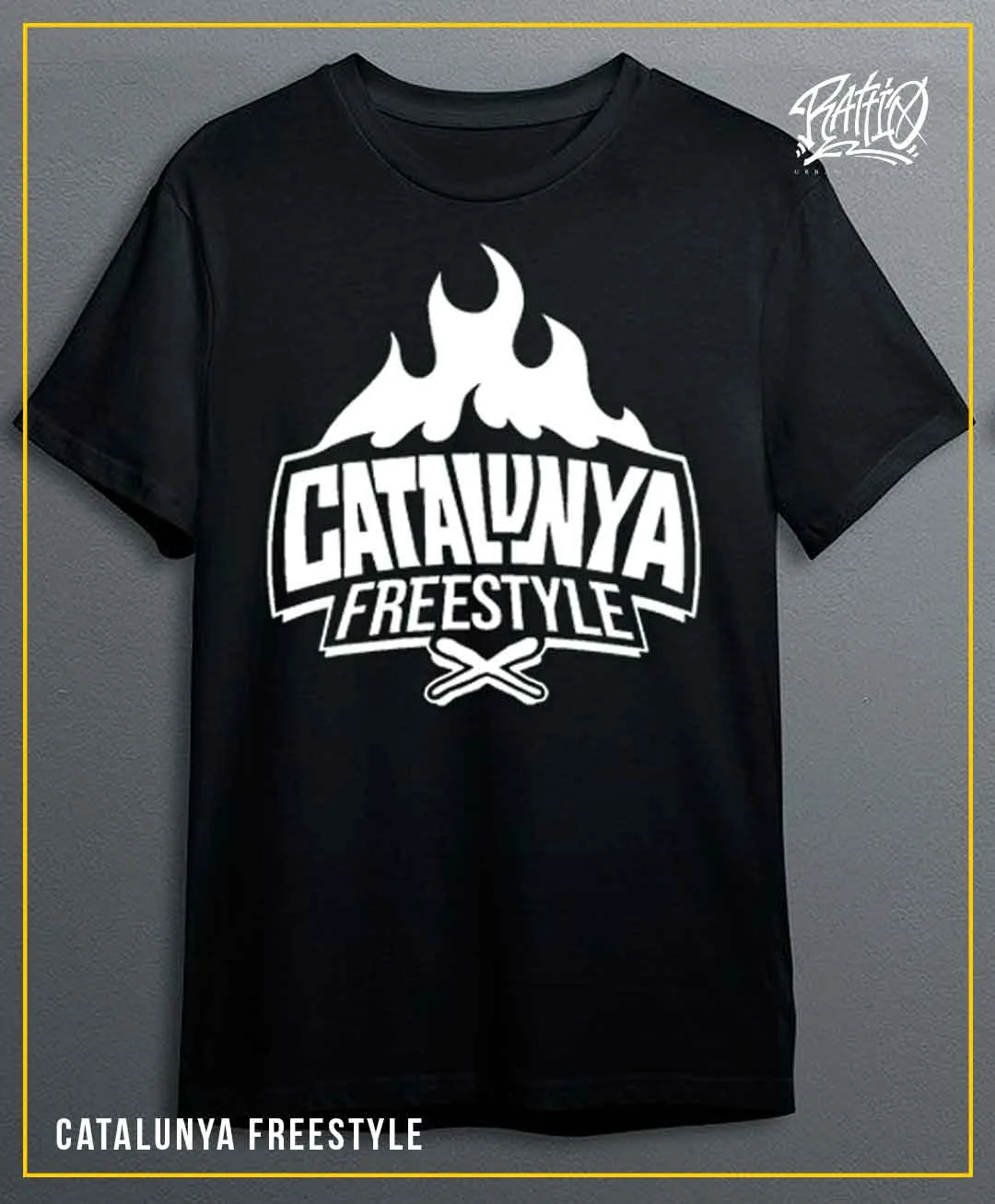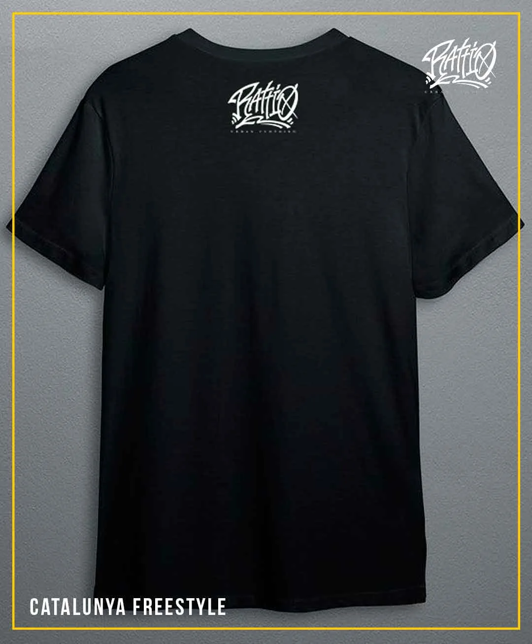 Samarreta negra amb el logo de «Catalunya Freestyle» a la part davantera i el logo de Rattio al clatell.