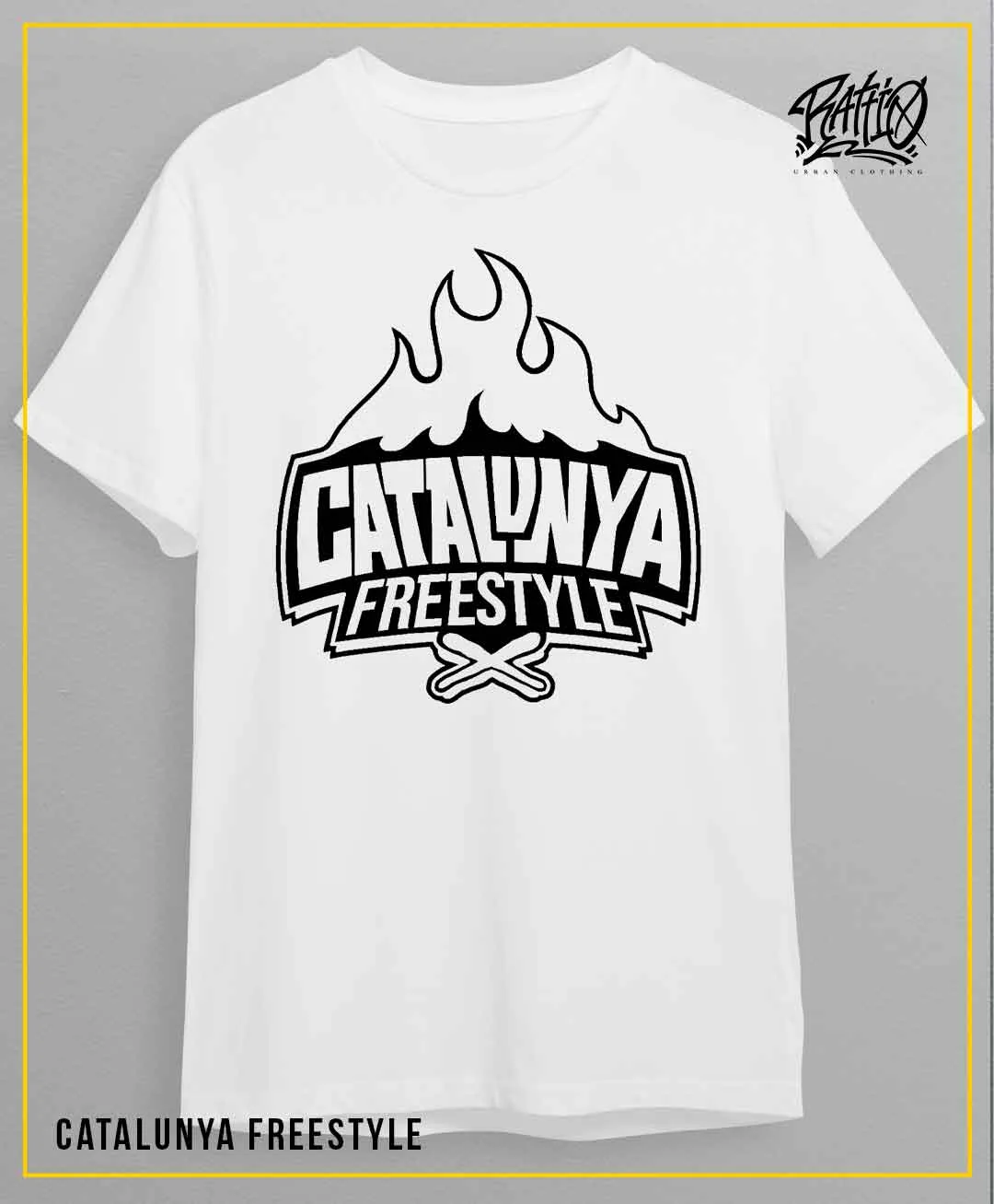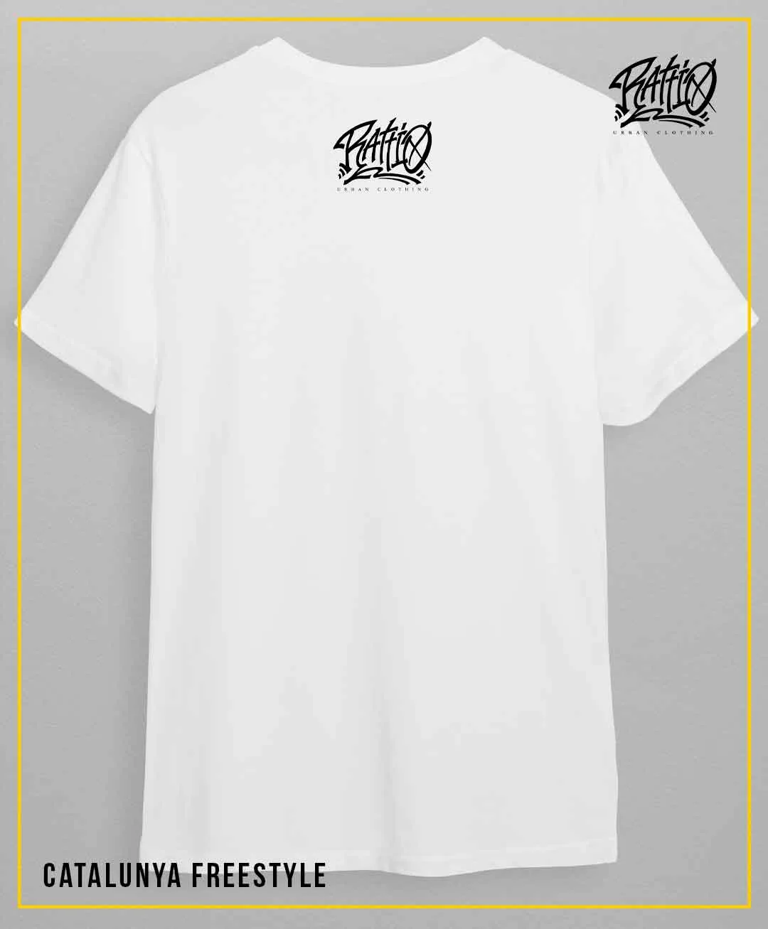 Samarreta blanca amb el logo de «Catalunya Freestyle» al davant i el logo de Rattio al clatell.